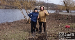 Сотрудники ДонНТУ заложили мемориальную аллею вуза в Донецком ботаническом саду (9 апреля 2021 г.)