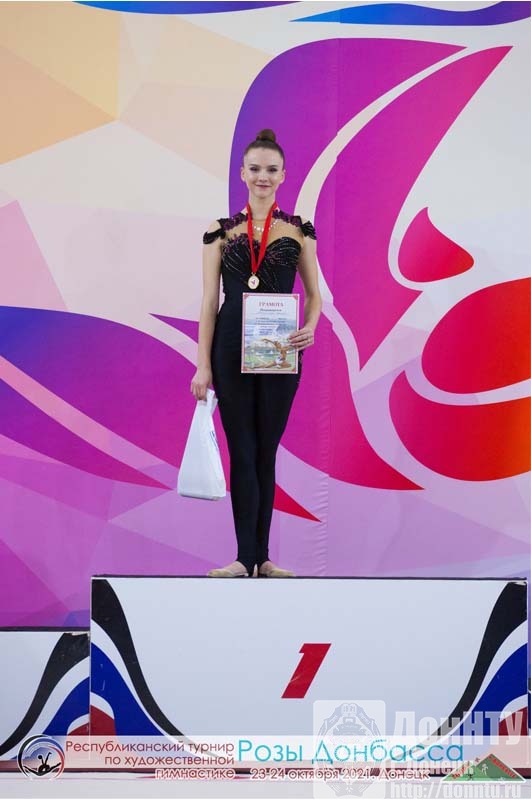 Студентка факультета интеллектуальных систем и программирования Донецкого национального технического университета Ирина Абакумова заняла I место среди гимнасток, выступающих по программе мастеров спорта. Победители соревнований получили медали, грамоты, а также памятные призы.