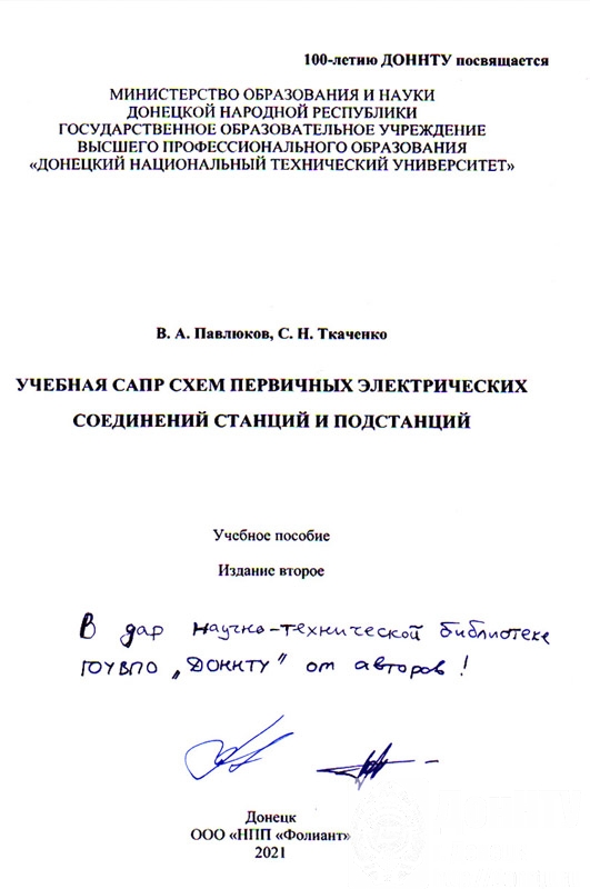 Фонд научно-технической библиотеки пополнился новым изданиям «Учебная САПР схем первичных электрических соединений станций и подстанций». – 2021. – (3 экз.). Авторы – кандидат технических наук, доцент, заведующий кафедрой электрических станций Сергей Николаевич Ткаченко и кандидат технических наук, доцент