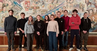 Директор музея Л. Д. Ковалёва провела познавательную лекцию, в рамках которой познакомила ребят с основными этапами развития университета, его выдающимися учёными и известными выпускниками, изображёнными на масштабном полотне «История ДонНТУ» известного донецкого художника Е. Калмыкова.