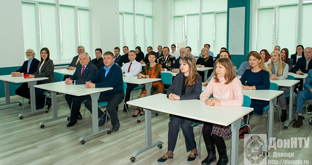 В приветственном слове ректор отметил важность этого долгожданного события и выразил огромную благодарность партнёру ДонНТУ с 2014 года – Донскому государственному техническому университету, который оказал большую помощь в проектировании, строительстве и снабжении лабораторий. Этот масштабный ремонт был завершён в преддверии Дня российского студенчества, став подарком для политехников. Также Александр Яковлевич подчеркнул чёткую работу Андрея Эдуардовича Фёдорова по взаимодействию с ДГТУ. Ректор ДонНТУ остановился на значении изучения гуманитарных наук в техническом университете: это и формирование необходимого уровня культуры и эрудиции, и мировоззренческих установок, и кругозора, и умения понимать и прогнозировать общественные процессы и свою роль в них, а также многое другое, безусловно необходимое для формирования высококвалифицированного и ответственного молодого инженера. Лаборатории, оборудованные новейшими средствами обучения, конечно, будут стимулировать студентов отлично учиться, а также способствовать формированию всесторонне развитой личности.