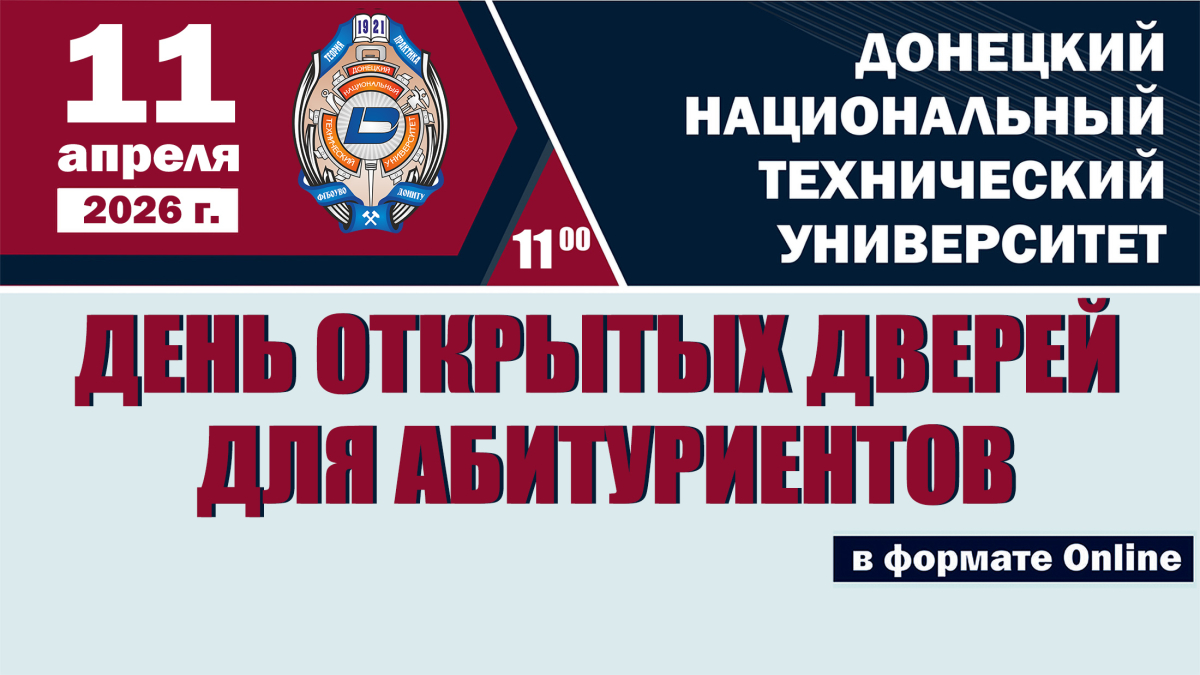 В Донецком национальном техническом университете в связи с началом вступительной кампании и с целью проведения профориентационной работы с абитуриентами 11 апреля в 11:00 пройдет День открытых дверей в формате онлайн