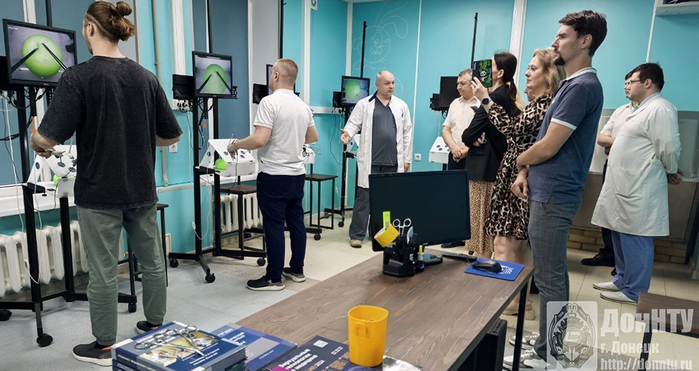 Делегация в составе советника Главы Донецкой Народной Республики Михаила Николаевича Кушакова, ДонНТУ Александра Яковлевича Аноприенко, Сергея Васильевича Борщевского, декана Татьяны Александровны Васяевой, заведующего ДонНТУ Владимира Николаевича Павлыша, руководителя инжинирингового центра «Политехник» ДонНТУ Сергея Витальевича Горбатко, председателя Совета молодых учёных ДонНТУ Руденко Марии Павловны, а также руководителей молодёжных лабораторий «Искусственный интеллект» и «Приборостроение и станкостроение» Ольги Валентиновны Рычки и Сергея Владимировича Деркачёва 19 июня посетила Институт неотложной и восстановительной хирургии им. В. К. Гусака.