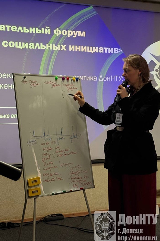 Инна Евгеньевна Лазарева выразила огромную благодарность руководству ДонНТУ за возможность принять участие в таком масштабном мероприятии в качестве спикера. Она отметила, что сейчас у студентов есть все возможности для получения знаний и опыта в сфере социального проектирования, чего так не хватало раньше.