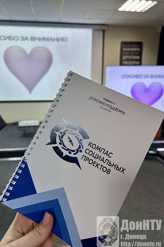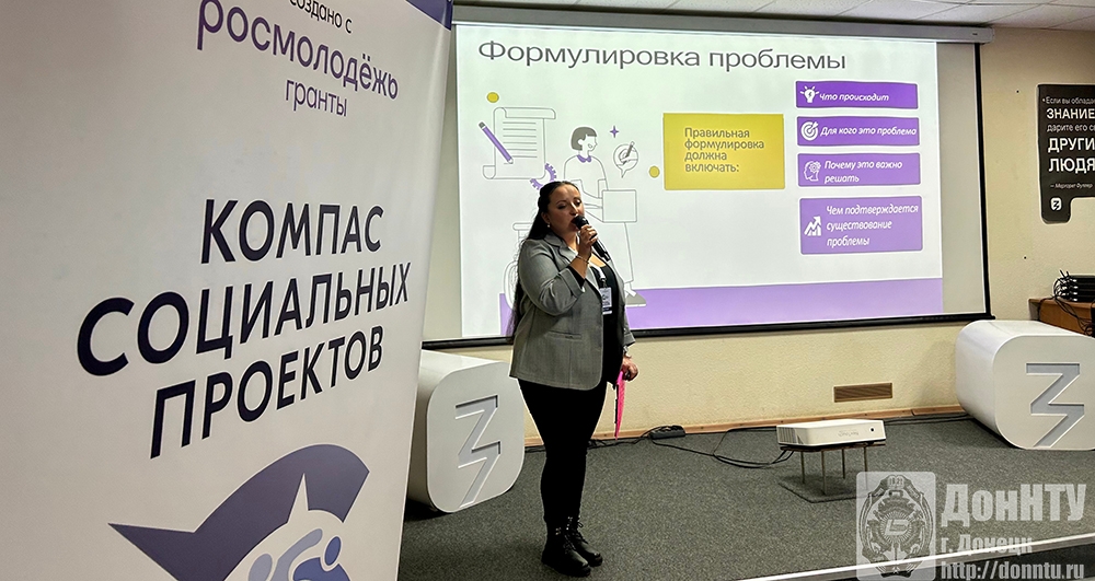 В 8 учебном корпусе Донецкого национального технического университета 25 ноября состоялось торжественное открытие Образовательного форума «Компас социальных инициатив», проводимого в рамках реализации проекта «Молодежная политика ДонНТУ: Воспитай инженера будущего!» при поддержке Росмолодёжь.Гранты. Наставник проектного решения «Мастерская по социальному проектированию «Компас социальных проектов» – Ирина Сергеевна Кладченко, руководитель – председатель профкома обучающихся ДонНТУ Ольга Владимировна Карук.