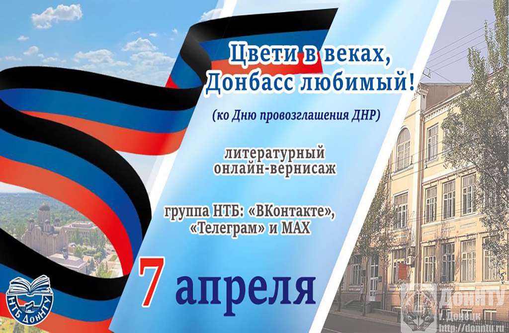 – ко Дню провозглашения ДНР принять участие в литературном онлайн-вернисаже «Цвети в веках, Донбасс любимый» (группы НТБ: , и , – 7 апреля);