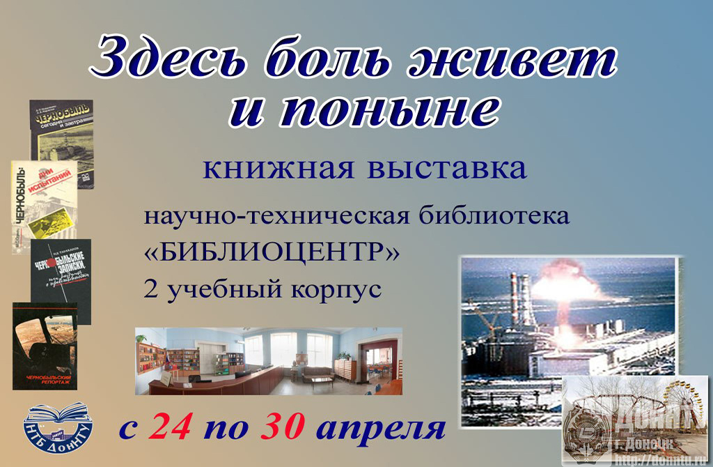 – к Международному дню памяти жертв радиационных аварий и катастроф ознакомиться с книжной выставкой «Здесь боль живет и поныне» («БИБЛИОЦЕНТР», 2 учебный корпус, с 24 по 30 апреля).